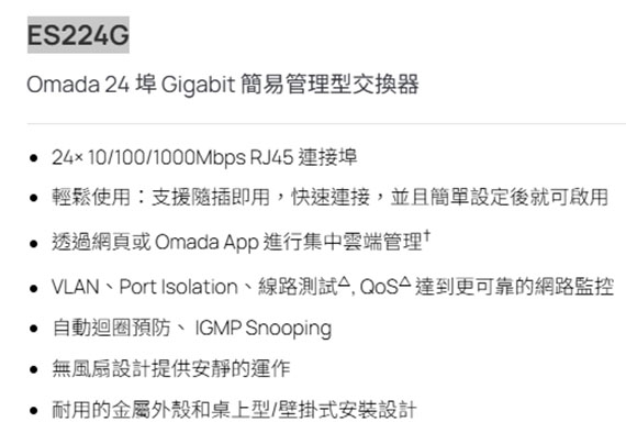 TP-Link ES224G 24 埠 Gigabit 簡易管理型交換器 商用
