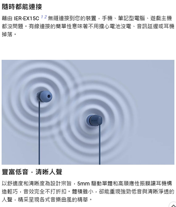 SONY新力 IER-EX15C 白色 入耳/耳道式耳機麥克風【SONY公司貨】