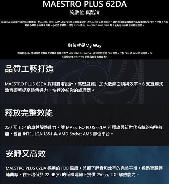 ADATA威剛 XPG MAESTRO PLUS 62SA CPU空冷散熱器