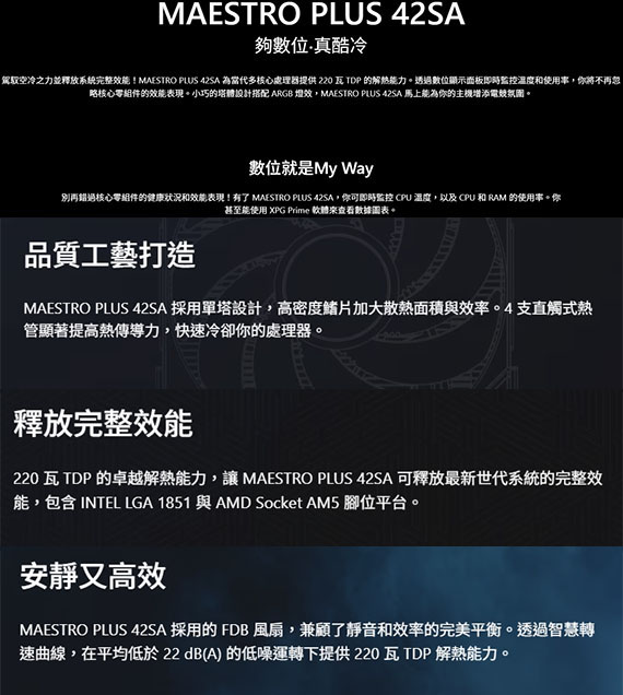 ADATA威剛 XPG MAESTRO PLUS 42SA CPU空冷散熱器
