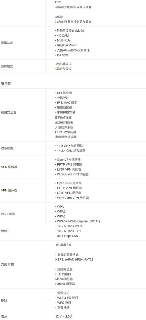 2.4GHz/5GHz雙頻,Wi-Fi7(802.11be)網路標準,無線傳輸速率高達約6500Mbps(2.4GHz:688Mbps,5GHz:5764Mbps),介面1×2.5Gbps WAN,1×2.5 Gbps LAN,3×1 Gbps LAN,1×USB 3.0,享受流暢的4K/8K串流媒體,身歷其境的AR/VR遊戲以及超快速檔案下載,多重連接模式(MLO),6個外接天線與波束成型技術,相容EasyMesh,透過Tether App進行網路管理,TP-Link家庭照護,三年保固 NCC認證碼: CCAH24LP7280T2