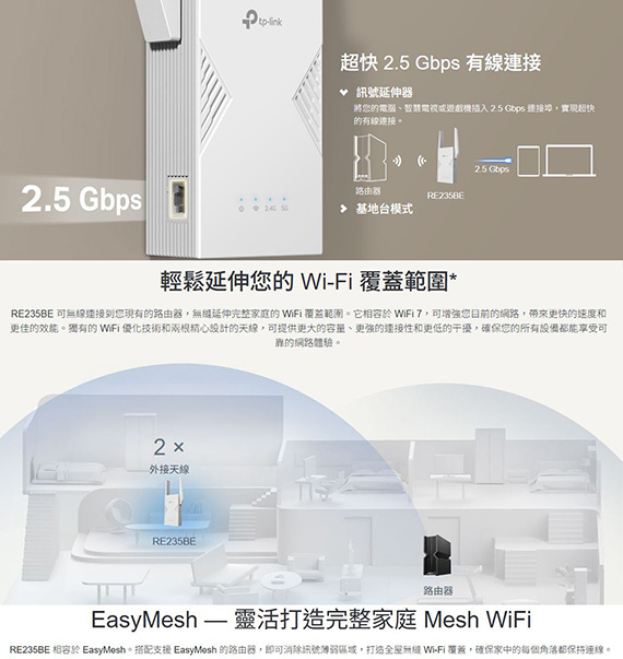 TP-Link RE235BE BE3600 雙頻 Wi-Fi7訊號延伸器