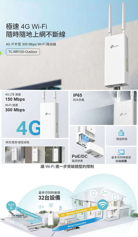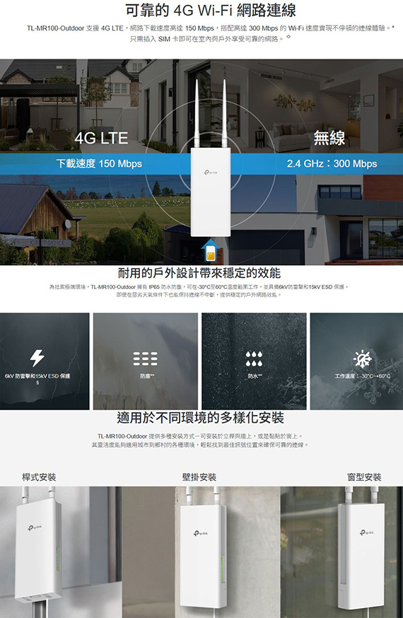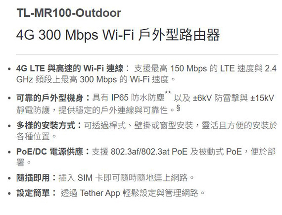 TP-Link TL-MR100-OUTDOOR 4G 300Mbps Wi-Fi 戶外型路由器