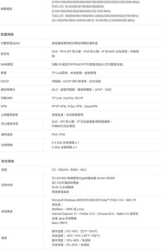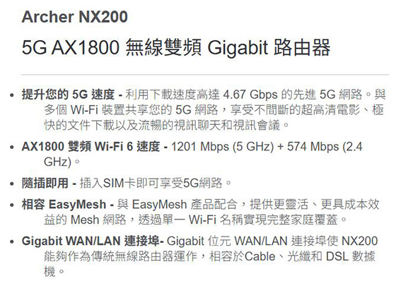 TP-Link Archer NX200 5G AX1800 無線雙頻Gigabit路由器